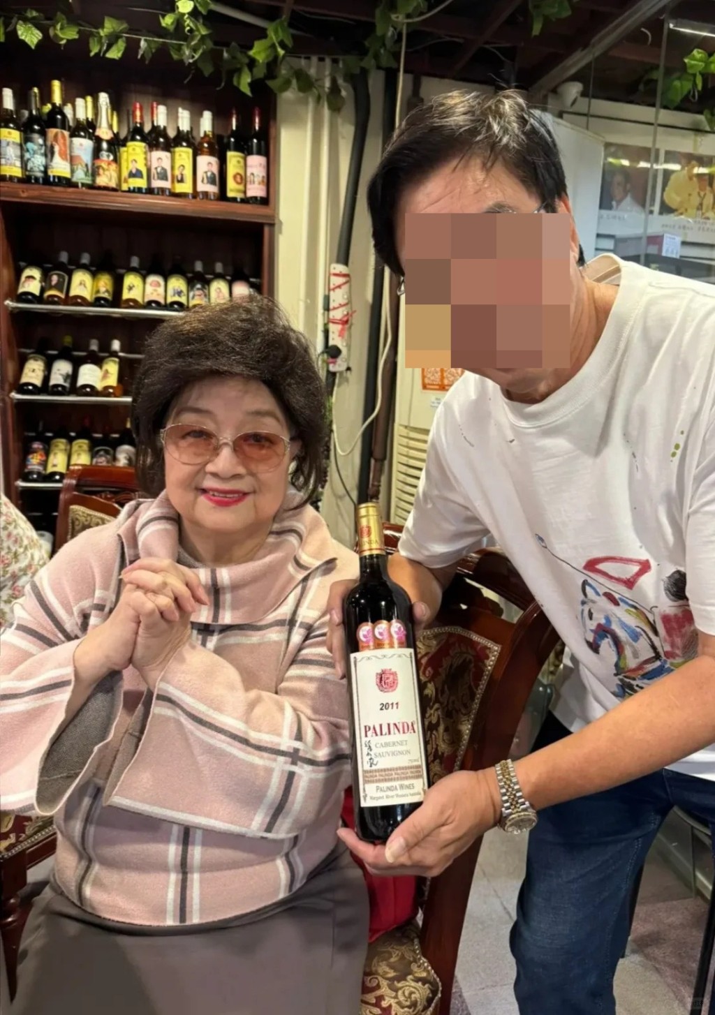 小鳳姐全晚都保持良好心情,盡顯親和本色。她不僅與吳大強等友人開心自拍,更熱情地與朋友擁抱、搭著膊頭合照,時而又與閨密手牽手。面對鏡頭,她總是笑意盈盈,時而單手托腮、時而雙手合十,親切感十足。其中一張照片更見到,有朋友特意準備了印有小鳳姐肖像的紅酒,非常有心思,逗得她笑逐顏開。
