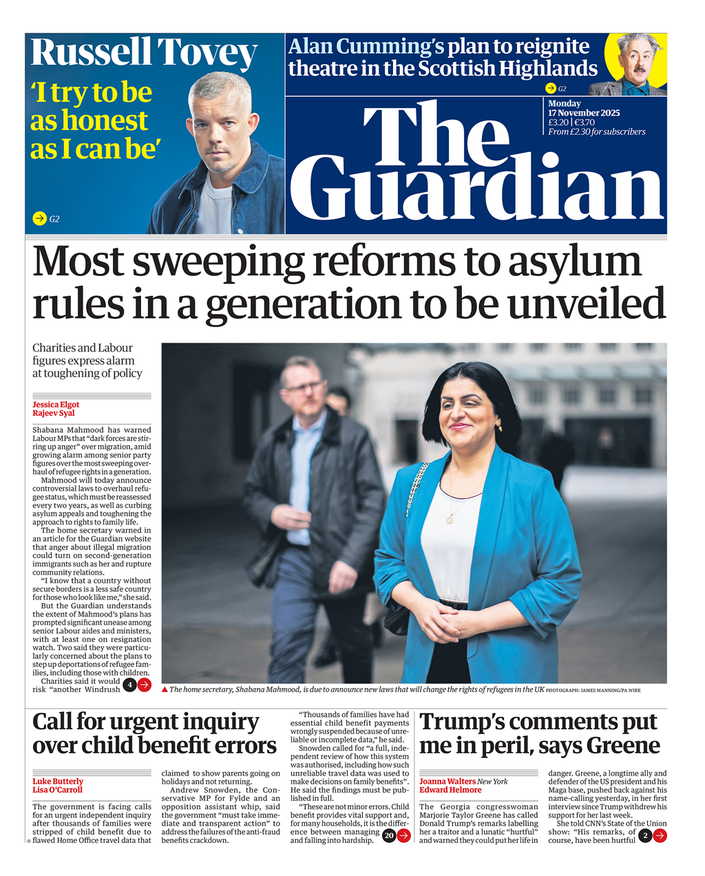 《都市報》報道,英國內政大臣馬哈茂德昨天在接受電視專訪時透露,根據她今天稍後將宣佈的改革計劃,任何以非法途徑抵達英國的人士,要等待20年才能申請永久居民資格,是目前所需時間的四倍。在等待期間,英國政府將每兩年半對這些人士進行一次審核,看看他們是否可以安全返國。此外,政府也不再向這些人士自動提供福利補貼,以減少偷渡來英國的吸引力。她同時還表示,將改革歐洲人權公約在英國的適用範圍和方式。馬哈茂德還指出,她知道非法移民問題已造成英國社會分化,因此必須要採取行動,以便讓公眾繼續支持庇護申請制度。報道還指出,英國工黨政府將要推出的新計劃,是效仿丹麥中間偏左政府推行的改革政策,而丹麥目前的庇護申請人數是過去四十年來最低的。不過,報道也指出,馬哈茂德今天稍後的宣佈,可能會引發英國執政工黨爆發新的內訌。