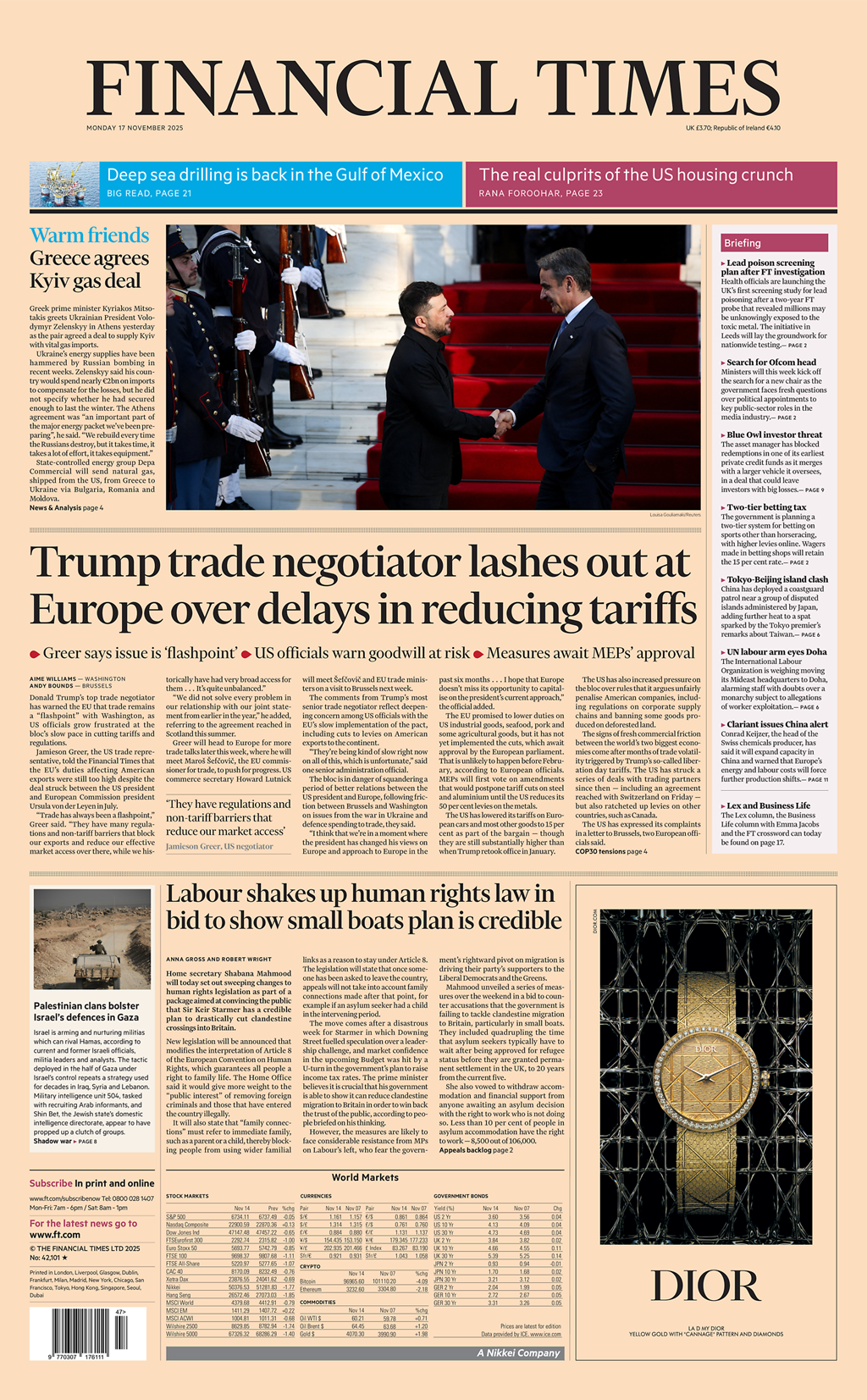 《金融時報》國際版報道,美國貿易代表格雷爾在接受該報採訪時警告歐盟說,貿易問題仍是歐盟與美國之間的一個導火索。他還指出,雖然美國總統特朗普與歐盟委員會主席馮德萊恩在今年7月達成協議,但歐盟對美國出口貨品徵收的關稅仍然過高,而且仍有不少法規及非關稅的貿易壁壘,阻礙了美國貨品出口至歐洲。格雷爾還稱,美國方面希望儘快解決這些問題,但歐盟方面對此則進展緩慢。